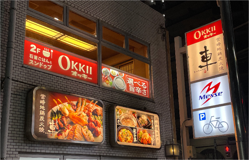 JR中央線三鷹駅南口徒歩2分の好アクセス・「宮崎地鶏炭火焼 車 三鷹店」店内にOKKIIがオープン。